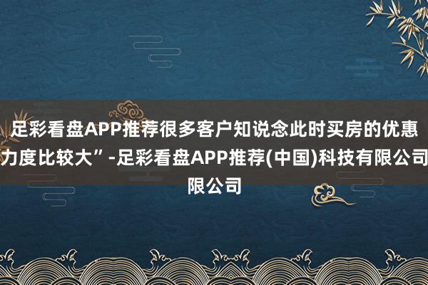 足彩看盘APP推荐很多客户知说念此时买房的优惠力度比较大”-