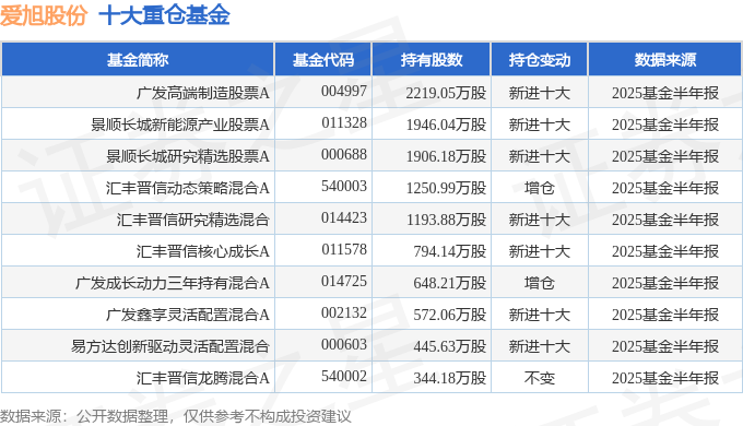 执有爱旭股份最多的基金为广发高端制造股票A,现在限制为44.64亿元,最新净值1.2163(8月7日),较上一交游日着落0.79%,近一年着落5.81%。该基金现任基金司理为郑澄然。