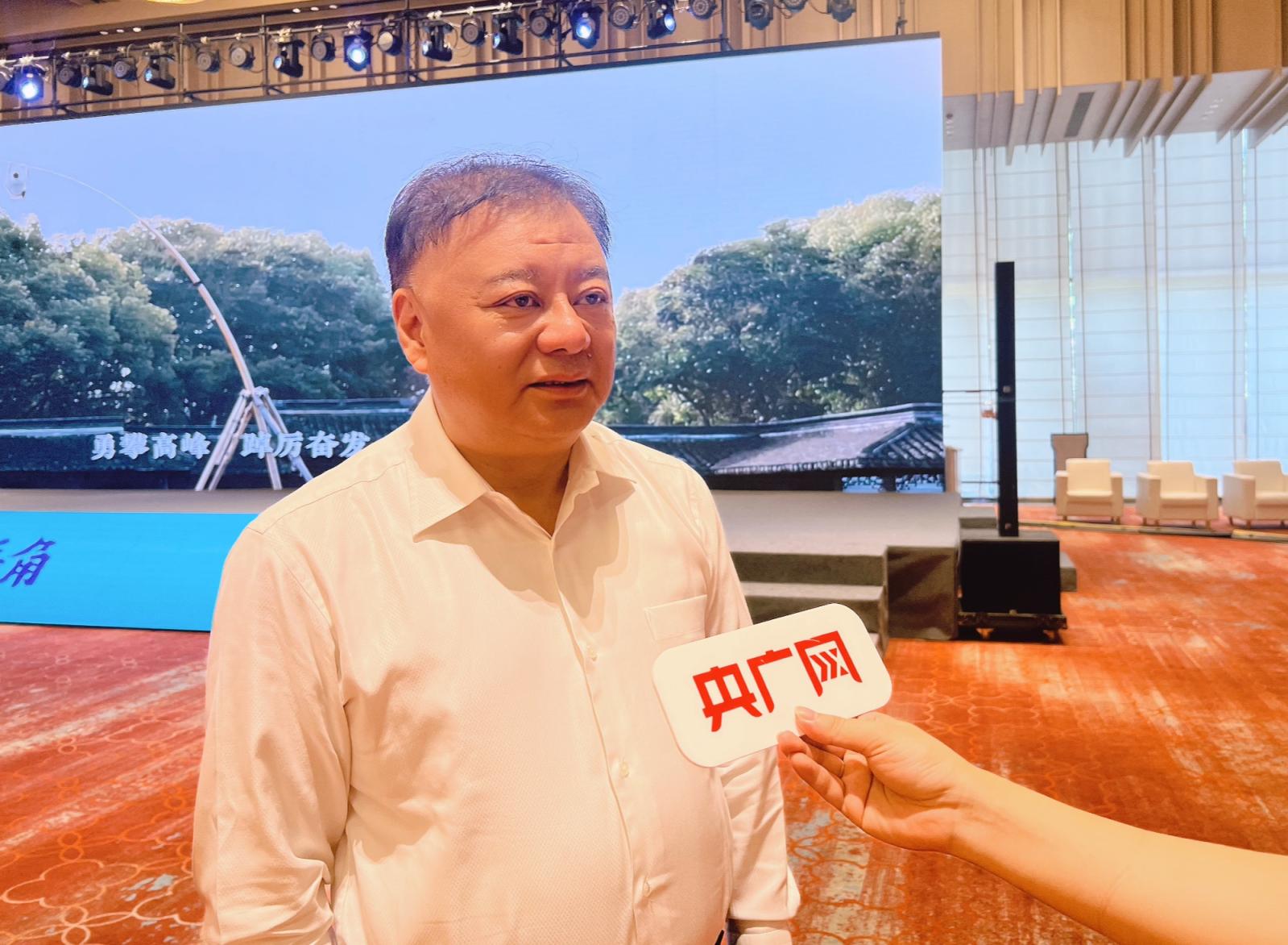 浙江省文旅厅一级巡查员、世界旅游定约副主席许澎接管央广网记者采访(央广网记者 孙俊 摄)